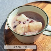 ③甘酒をお好みの甘さに調整して、小鍋で小豆、お餅を一緒に温める